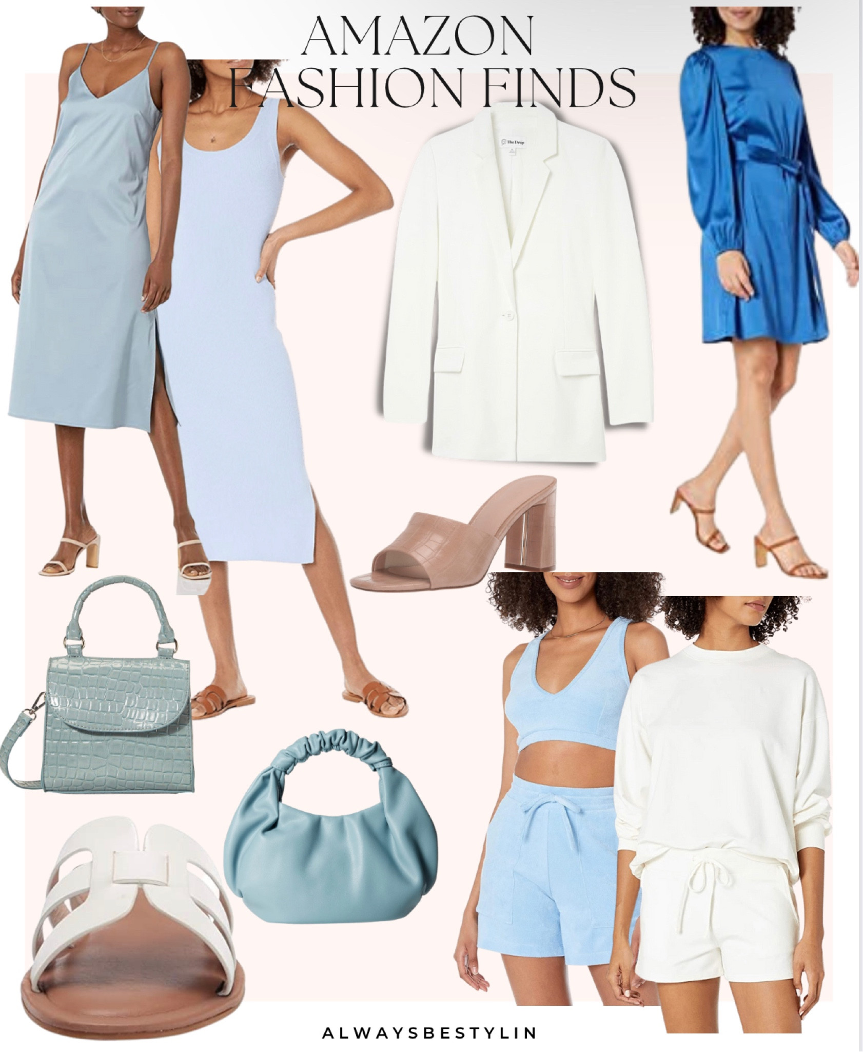 Source : themomedit.comBlue Dresses for Women 2024, Fashion Round Neck Casual Slim Fit